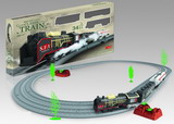 Circuit de train électrique complet avec locomotive vapeur, wagons et rails à assembler. Sons de sifflet et fumée. Montage facile. Dès 3 ans.